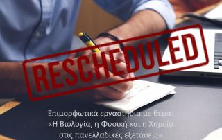 Με βάση τις επίσημες οδηγίες για την πρόληψη της εξάπλωσης του κορονοϊού, σας ενημερώνουμε ότι τα επιμορφωτικά εργαστήρια για καθηγητές ΠΕ04 αναβάλλονται. Θα ενημερωθείτε με επόμενη ανακοίνωση για τη νέα ημερομηνία διεξαγωγής.