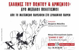 Την Τετάρτη 19 Φεβρουαρίου ώρα 18.30 η Σχολή μας σε συνεργασία με τον Σύλλογο Ποντίων Αργυρούπολης και την Εθνική Επιτροπή Αρμενίων Ελλάδος διοργάνωσε στο θέατρο του σχολείου μια εκδήλωση αφιερωμένη στην Ποντιακή και Αρμενική Γενοκτονία.