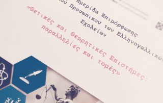 "Θετικές και Θεωρητικές Επιστήμες: παραλληλίες και τομές" στην 7η Ημερίδα Επιμόρφωσης Διδακτικού Προσωπικού Ελληνογαλλικών Σχολείων, που πραγματοποιήθηκε στη Λεόντειο Σχολή Αθηνών.