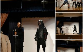 Στο θέατρο της Σχολής μας στις 30/10/2017, μέλη της Ελληνικής Ομοσπονδίας Ξιφασκίας παρουσίασαν στους μαθητές της α΄γυμνασίου και της στ δημοτικού το άθλημα στη διαχρονική εξέλιξή του και τους έδωσαν την ευκαιρία να γίνουν και εκείνοι ξιφομάχοι!